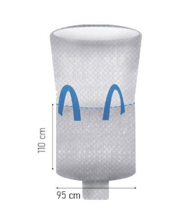 - Style:Top inlet sprout bottom discharge sprout. C/W secondary draw string closure. 4 x reinforced lifting loops 30cm high